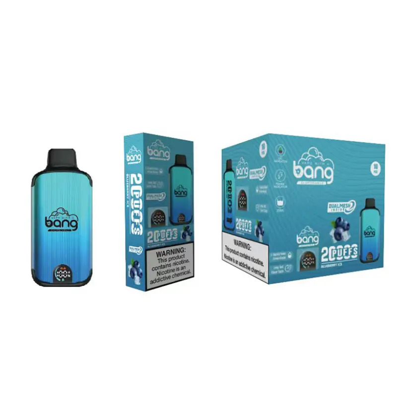 Bang 20000 z magazynu UE oferuje niezawodne jednorazowe wapowanie do 20 000 zaciągnięć, zasilane mocną baterią 850mAh oraz płynną grzałką mesh zapewniającą bogaty i stabilny smak. Dzięki szybkiemu ładowaniu Type-C i 12 popularnym smakom zapewnia wygodę i różnorodność. Pakowany po 10 szt. w pudełku i 200 szt. w kartonie, Bang 20k jest dostępny w magazynach UE z szybką dostawą 3–7 dni roboczych, darmową wysyłką oraz doskonałą opcją dla sprzedaży detalicznej i hurtowej.