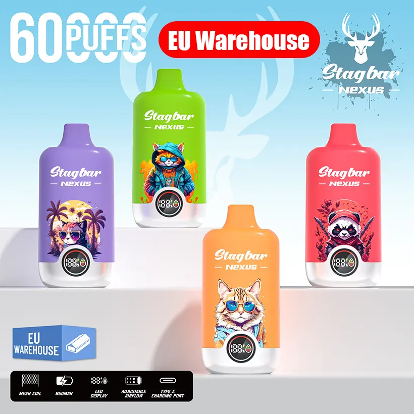 Stagbar 60K Puffs Nexus jednorazowy e papieros z 10 smakami bateria 850mAh 50ml e płynu grzałka mesh 0.9Ω ładowanie Type C magazyn UE hurt płynne i długotrwałe doświadczenie vapingu